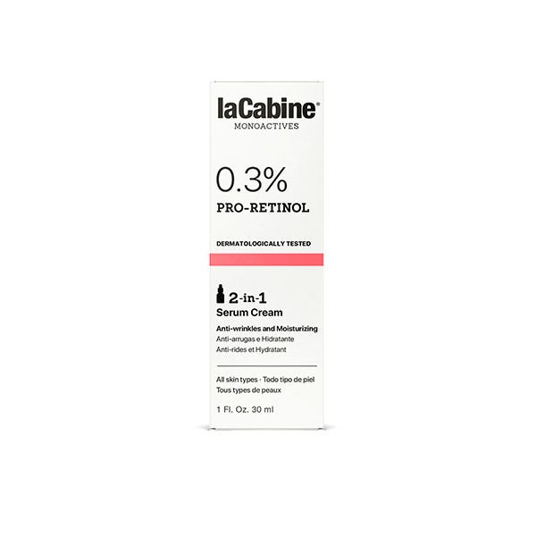 Sérum Crema 2 en 1 con pro-retinol al 0,3% (un precursor del Retinol), ayuda a estimular la síntesis de colágeno y a mejorar la regeneración celular para difuminar las arrugas, al mismo tiempo que hidrata, nutre y aporta confort a tu rostro.