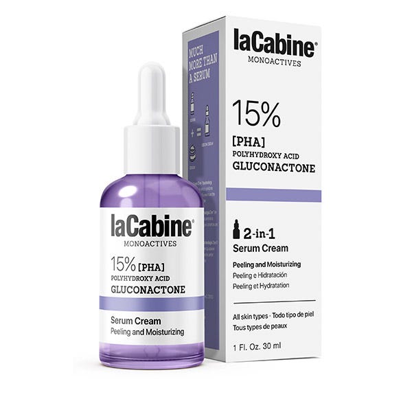 Sérum Crema 2 en 1 con PHA (Polyhydroxy acid) al 15%, exfolia y renueva suavemente la piel para mejorar su textura y la apariencia de los poros, al mismo tiempo que hidrata y aporta confort a tu rostro.