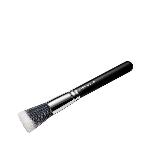La brocha 187S de M·A·C es una brocha amplia y circular que permite aplicar polvos faciales, líquidos y cremas difuminándolos suavemente con pequeños golpecitos.