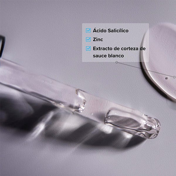 - Enriquecido con Ácido Salicílico, Zinc PCA y Extracto de Corteza de Sauce Blanco.