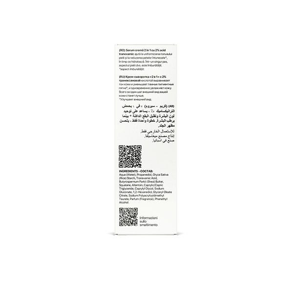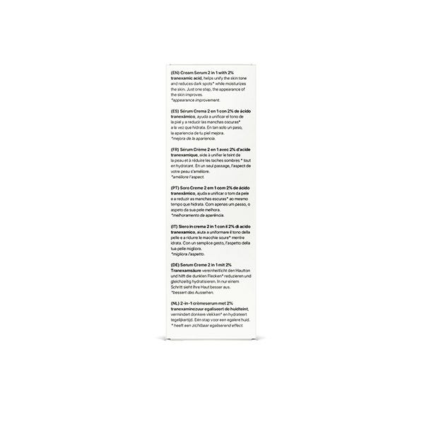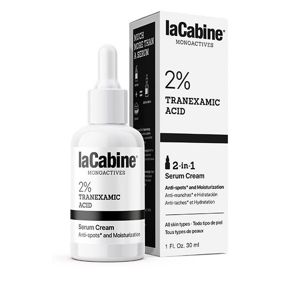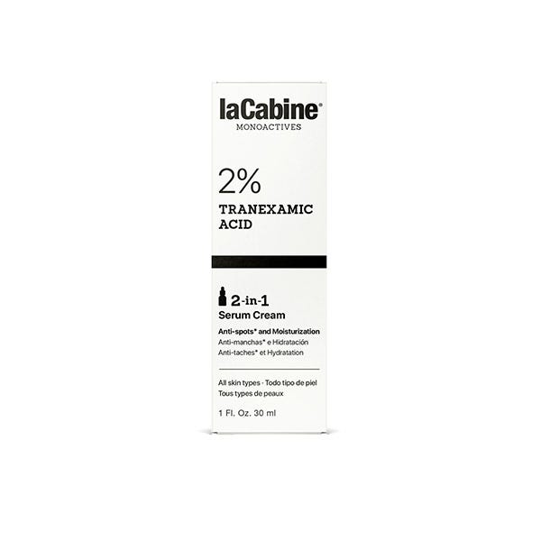Sérum Crema 2 en 1 laCabine con 2% de ácido tranexámico, ayuda a unificar el tono de la piel y a reducir las manchas oscuras* a la vez que hidrata. En tan solo un paso, la apariencia de tu piel mejora.
