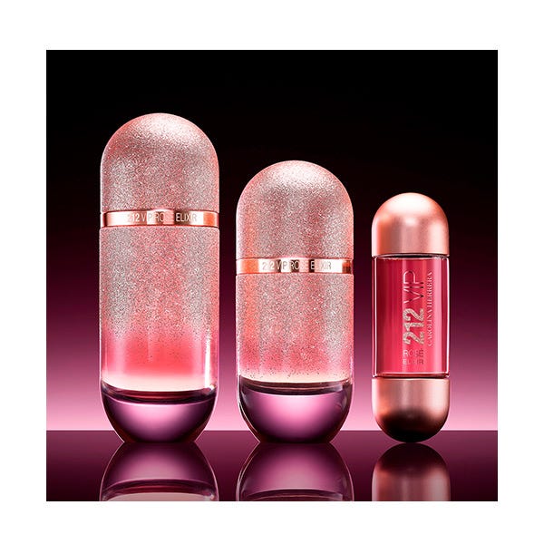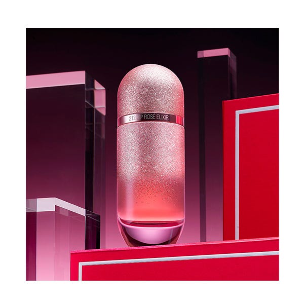 Elaborado por la perfumista Emilie Coppermann, 212 VIP Rosé Elixir es una interpretación sensual y más intensa de la emblemática fragancia 212 VIP Rosé de Carolina Herrera. Una declaración de alegría, libertad y feminidad, este eau de parfum invita a celebrar la belleza propia con cada una de sus pinceladas.