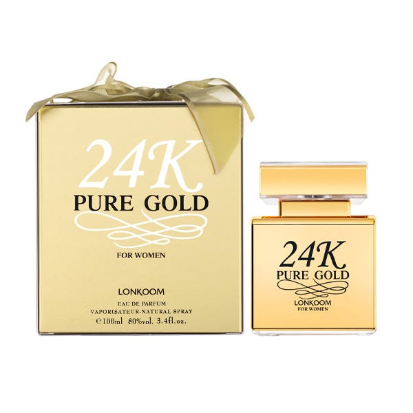 Sumérgete en el universo dorado de 24K GOLD Eau de Parfum de Lonkoom, una fragancia diseñada para la mujer elegante, segura y con un brillo propio. Esta creación olfativa cautiva desde el primer instante con una fusión irresistible de notas frutales, florales y gourmand, envolviendo los sentidos en un halo de sofisticación y sensualidad.