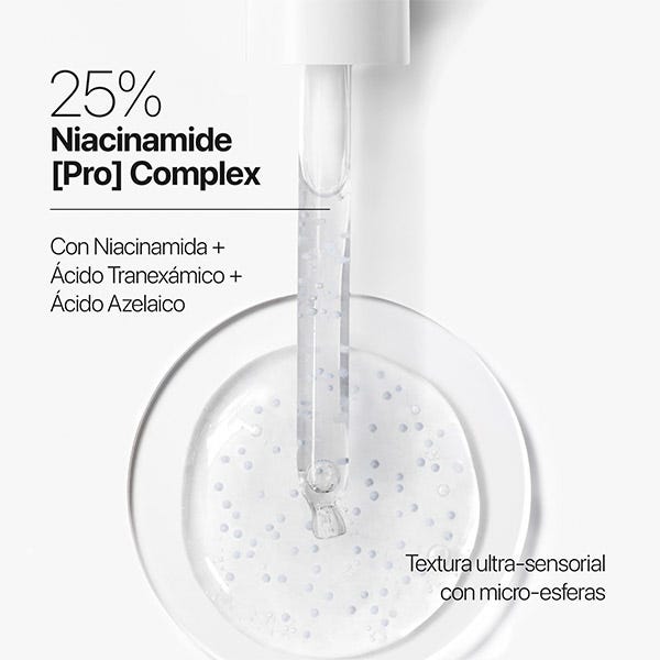 Sérum de última generación con un complejo de 25% Niacinamida Pro, Ácido Tranexámico y Ácido Azelaico para unos resultados elevados a la máxima potencia.