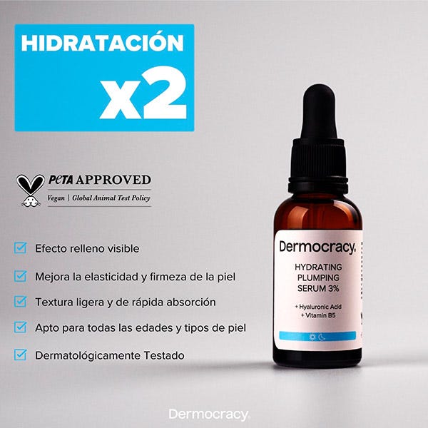 Descubre la hidratación profunda con el HYDRATING PLUMPING SERUM 3%. Esta fórmula avanzada combina el Pantenol nutritivo con el poderoso Ácido Hialurónico para rellenar, hidratar y revitalizar la piel desde el interior. Diseñado para combatir la deshidratación y mejorar la elasticidad de la piel, este serum es esencial para un rostro jugoso y rebosante de vida.