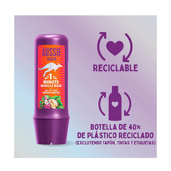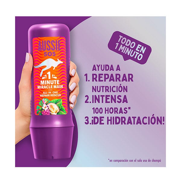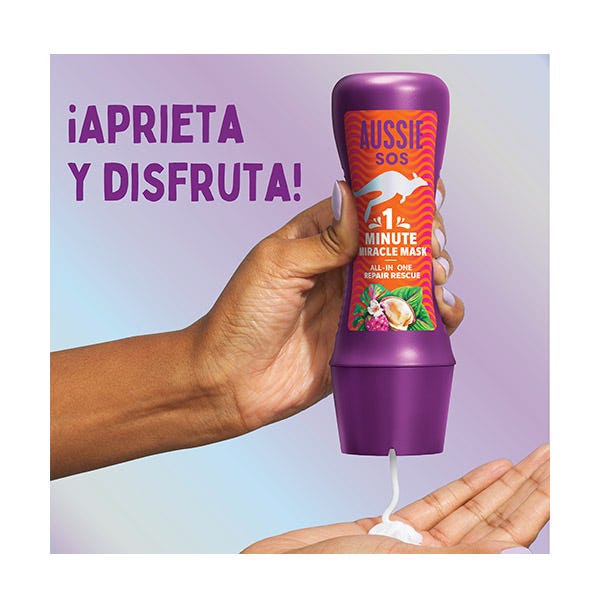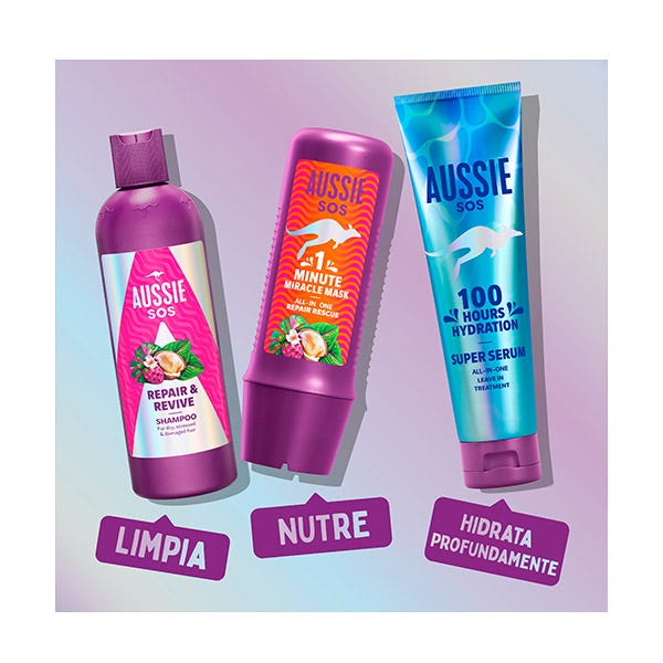 El tratamiento intensivo SOS Deep Repair 3 Minute Miracle de Aussie elaborado con superfrutas australianas es el tratamiento nutritivo del cabello definitivo para los mechones secos, dañados y apagados.