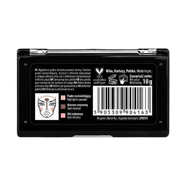 Paleta marmoleada y horneada diseñada especialmente para en el contornear el rostro.