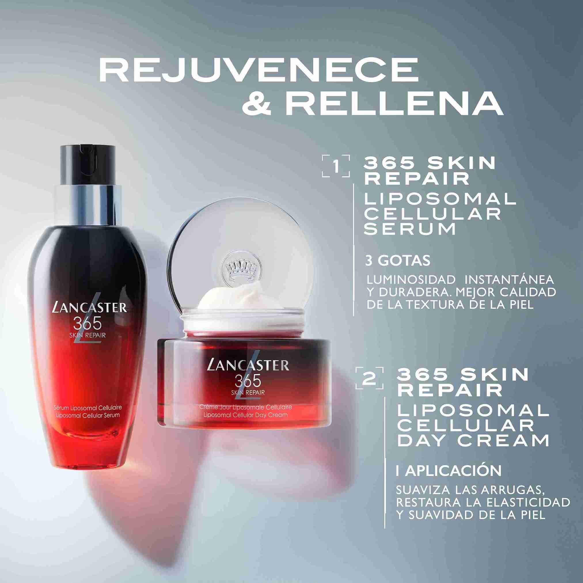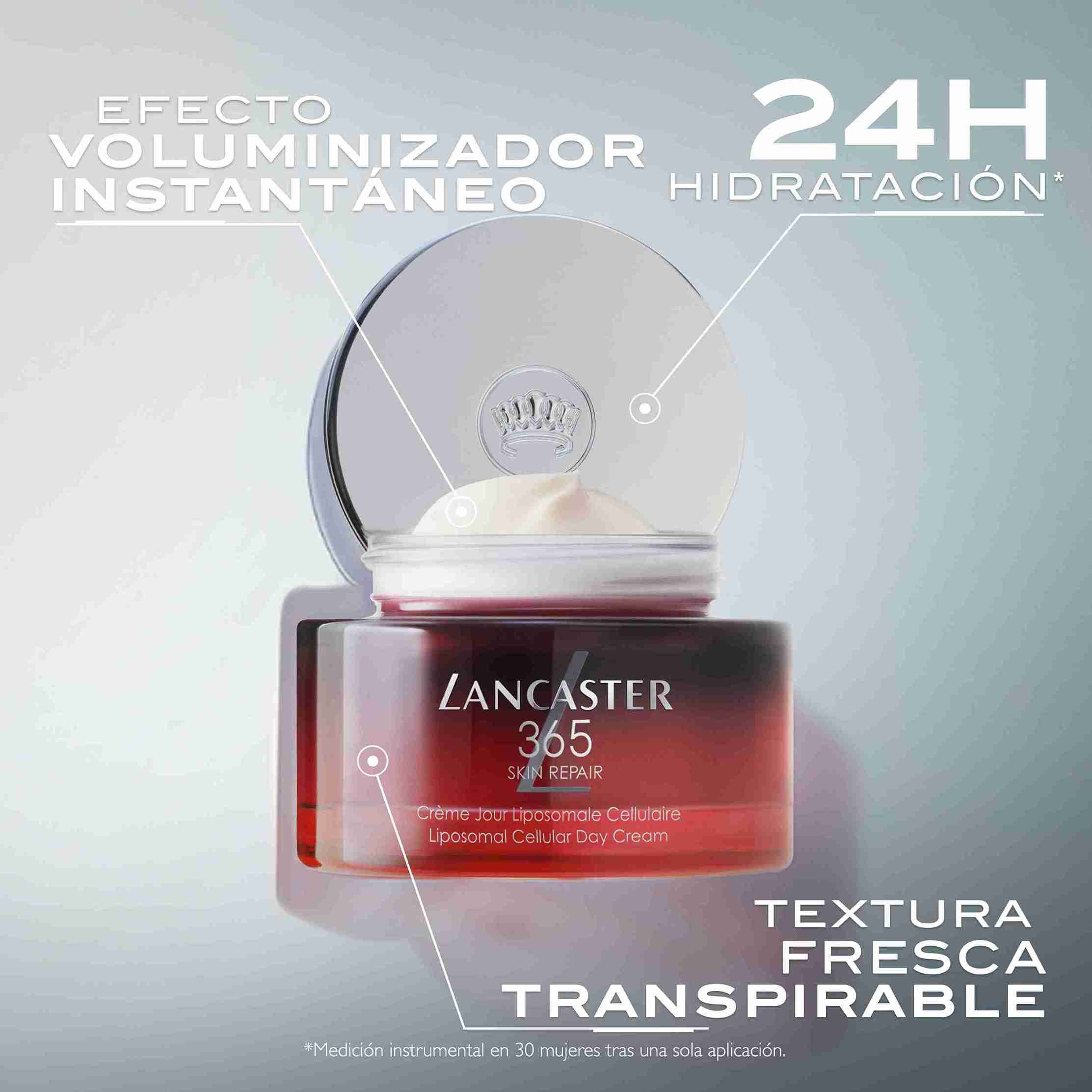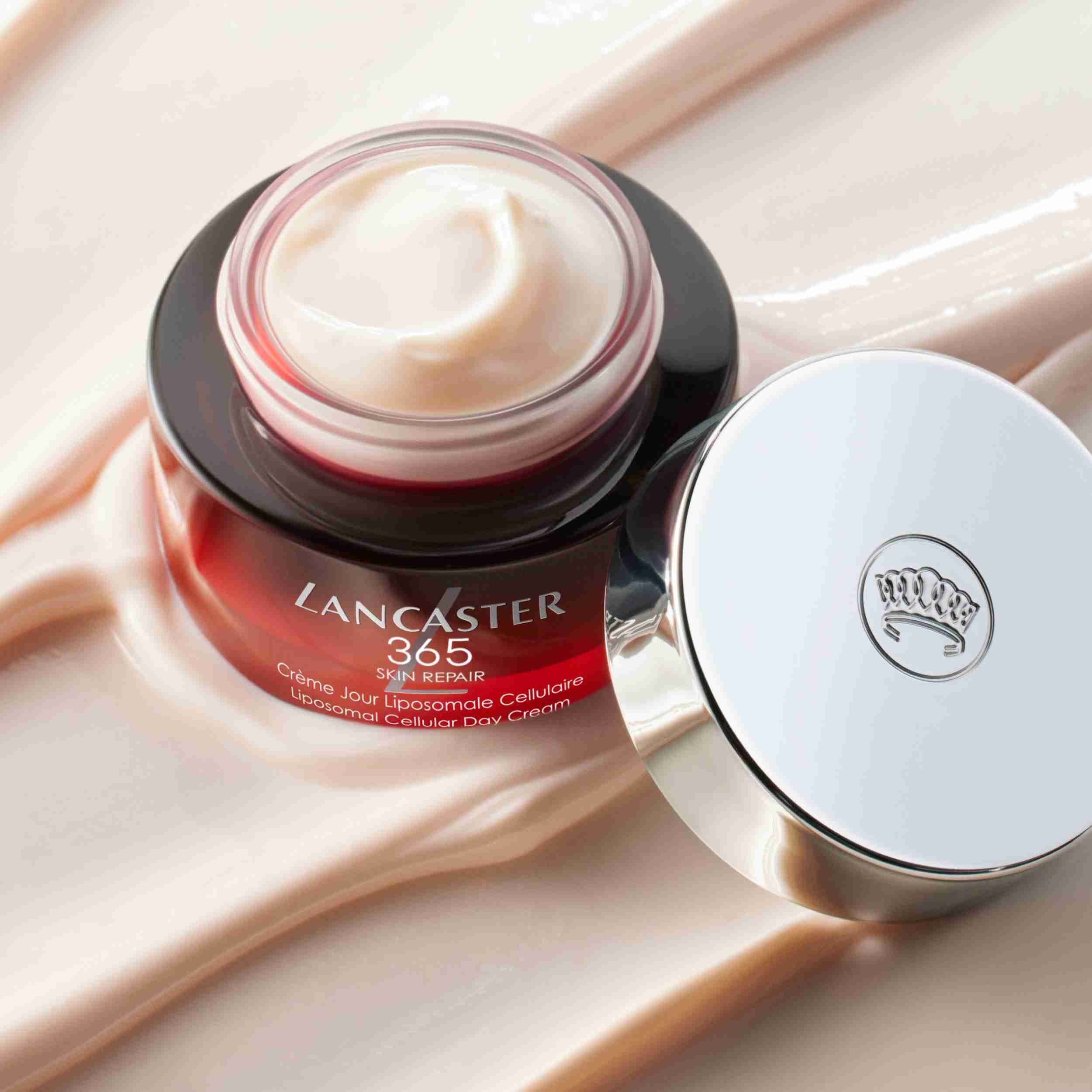Lancaster 365 Skin Repair Liposomal Cellular Day Cream restablece la piel del daño producido por la radiación solar, la reafirma y alisa las líneas de expresión.