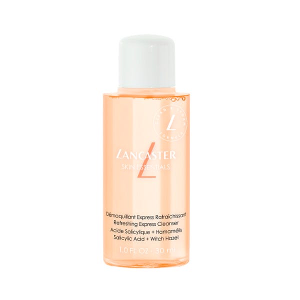 Skin Essentials Refreshing Express Cleanser: este limpiador de Lancaster actúa como un desmaquillador suave para el rostro y los ojos y elimina los filtros UV, las impurezas y los residuos de contaminación mientras tonifica la piel. La piel se purifica, los poros se cierran y su textura se afina. La piel se siente radiante, limpia y fresca.