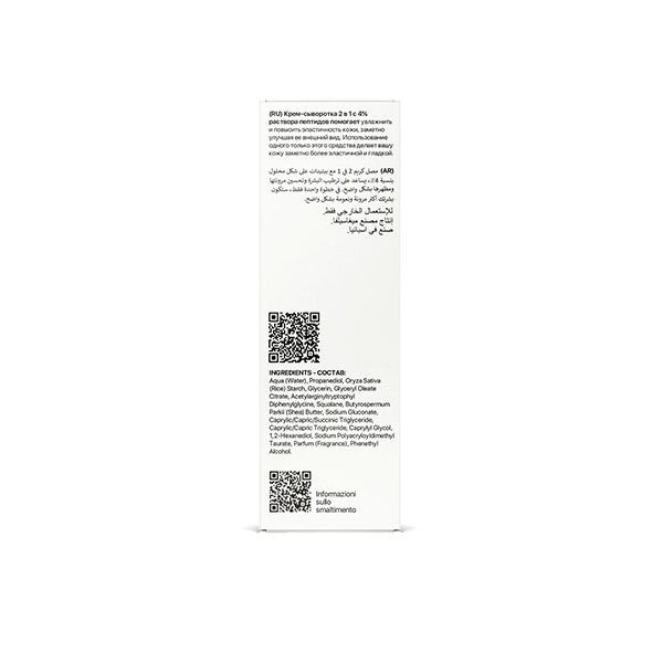 Sérum Crema 2 en 1 con peptides solution al 4%, ayuda a estimular la síntesis del colágeno, para reafirmar la piel, al mismo tiempo que hidrata y aporta confort a tu rostro.