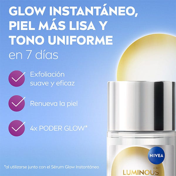 LUMINOUS630® SKIN GLOW Exfoliante Líquido actúa eficazmente sobre las múltiples dimensiones del glow de la piel: