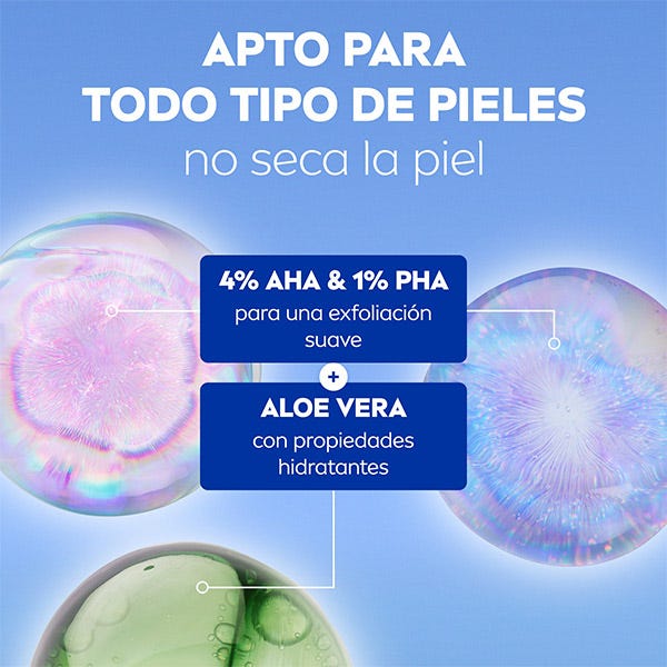 3. EXFOLIACIÓN SUAVE: piel renovada con principios activos 4% AHA y 1% PHA. Su fórmula única altamente eficaz es ligera y se absorbe rápidamente.