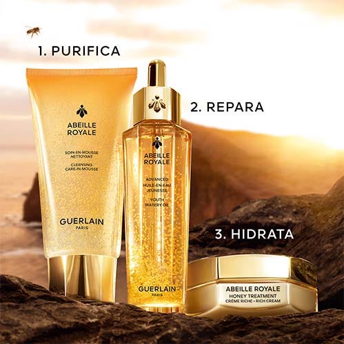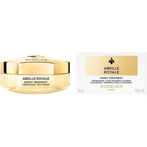 La Crema Rica Honey Treatment¹ se inspira en los apósitos clínicos de miel y concentra los productos apícolas más potentes seleccionados por la Investigación Guerlain para corregir los 4 signos visibles de la pérdida de colágeno causada por el envejecimiento: la firmeza, las arrugas, la lisura y la luminosidad.