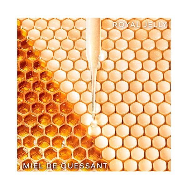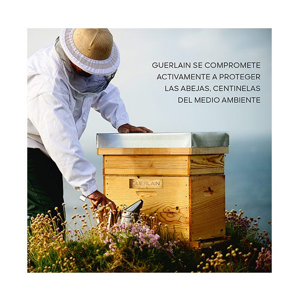 Contiene una serie de productos de la abeja rigurosamente seleccionados: exclusiva miel de la isla de Ouessant, miel de Córcega, miel de trébol de Nueva Zelanda y una jalea real exclusiva de Guerlain recolectada en Francia.