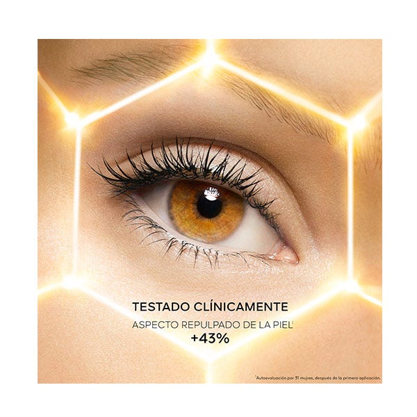Las bolsas y ojeras se atenúan. La zona de los ojos luce más tersa y luminosa. La piel adquiere una textura flexible y envolvente.