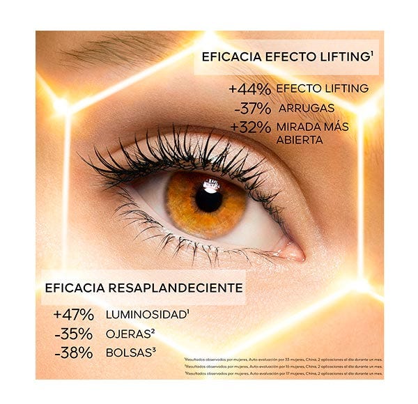La fórmula Renueva activadora de luminosidad actúa en el corazón de la epidermis para iluminar intensamente la piel y reavivar visiblemente la juventud de la mirada gracias a su fórmula enriquecida con un concentrado de miel blanca y un complejo descongestivo.