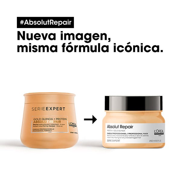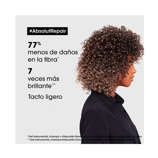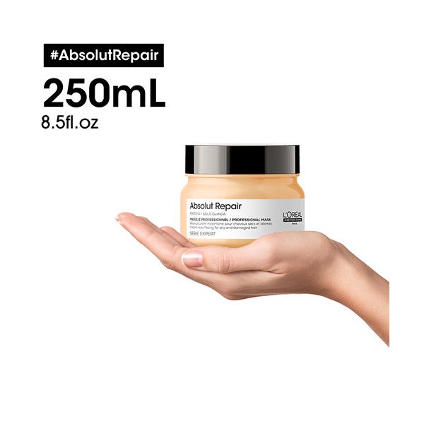 Después del champú Absolut Repair, distribuir sobre el cabello secado con toalla.