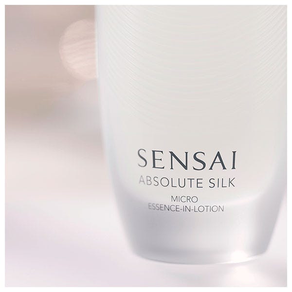 Absolute Silk Micro Essence- In-Lotion es una loción antienvejecimiento de textura líquida y ligera que proporciona una hidratación inmediata y una sensación refrescante.