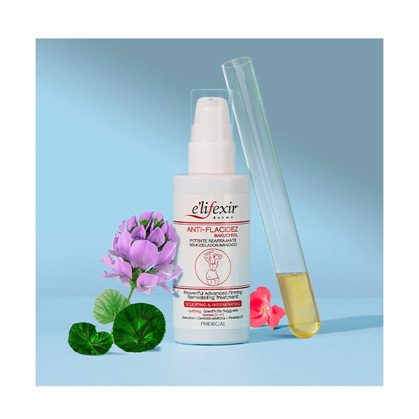 Elifexir Bakuchiol Anti-flacidez es un aceite corporal 100% natural reafirmante, regenerador antiedad y remodelador avanzado.