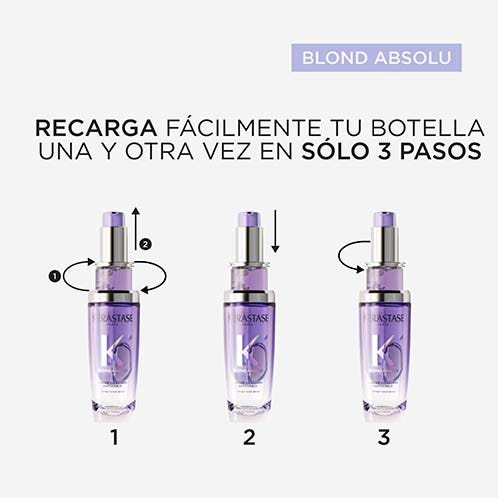 Aplicar 1 ó 2 gotas sobre el cabello húmedo o seco, como tratamiento sin aclarado.