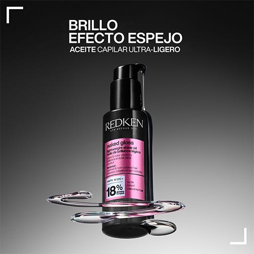 Aceite Ultra-ligero Redken Naked Gloss – Brillo Efecto Espejo y Protección Térmica