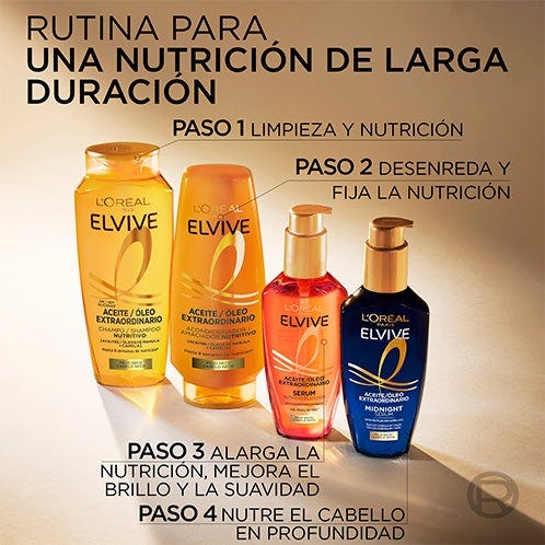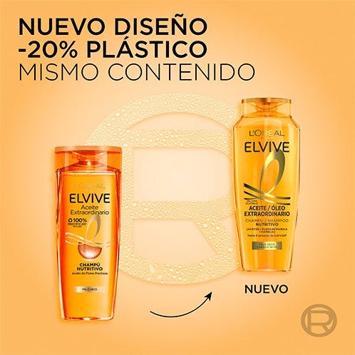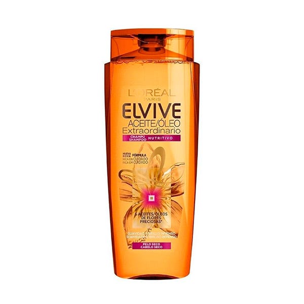 El Champú Aceite Extraordinario de Elvive transforma los cabellos secos llenándolos de vida, luciendo sublimes y brillantes. Su textura ligera enriquecida con seis aceites de flores preciosas* se funde en el cabello para una nutrición extraordinaria.