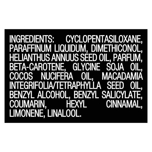 Aceite sin aclarado para un cabello brillante. Frota de 1 a 3 dosis de aceite entre las palmas de tus manos. Aplica de medios a puntas sobre el cabello húmedo o seco. Evita el contacto con los ojos. En caso de contacto, lava con abundante agua.