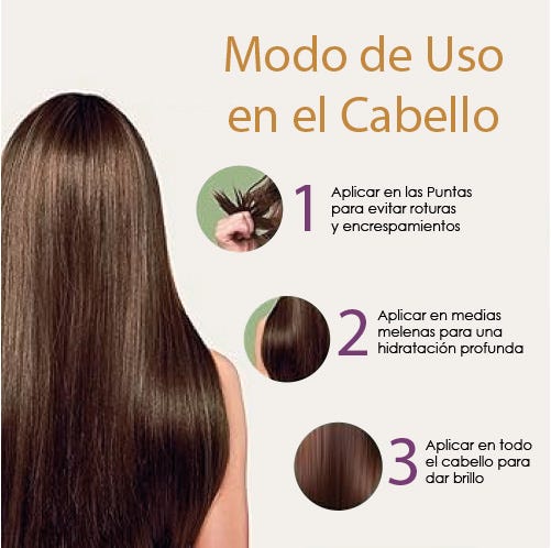 Este aceite actúa como un hidratante natural, lubricando desde la raíz y ayudando a prevenir su caída.