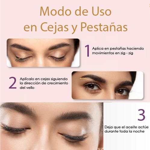 4- Dado que el aceite requiere tiempo para absorberse, es recomendable aplicarlo por la noche antes de dormir. De esta manera, actuará mientras descansas. A la mañana siguiente, asegúrate de limpiar completamente tu rostro. Después de varias aplicaciones, notarás una notable mejora en tus pestañas y cejas.