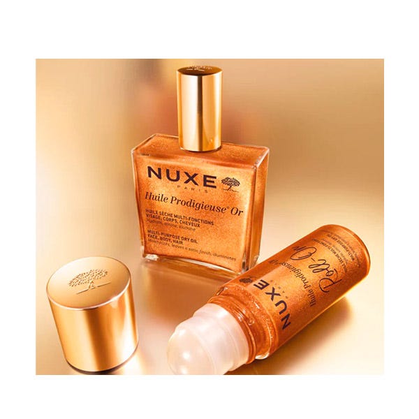 Aceite Seco Roll-On d'Or Huile Prodigieuse con 7 aceites 100% vegetales se reinventa en un nuevo formato que propone un gesto lúdico, rápido y práctico para disfrutar de un placer sensorial inigualable.