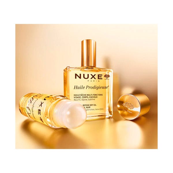 Aceite Seco Roll-On Huile Prodigieuse con 7 aceites 100% vegetales se reinventa en un nuevo formato que propone un gesto lúdico, rápido y práctico para disfrutar de un placer sensorial inigualable.