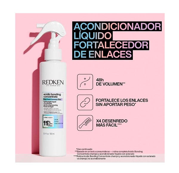 Acondicionador líquido con aclarado para cabello fino dañado con tecnología Bonding Care Complex y Ácido Cítrico que penetra en el interior del cabello para reparar, acondicionar y aportar volumen.