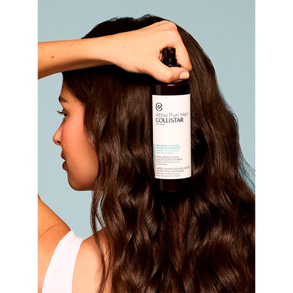 Acondicionador de textura líquida con Ácido hialurónico, para una hidratación intensa y un efecto de relleno del cabello, que le devuelve su luminosidad y vitalidad.