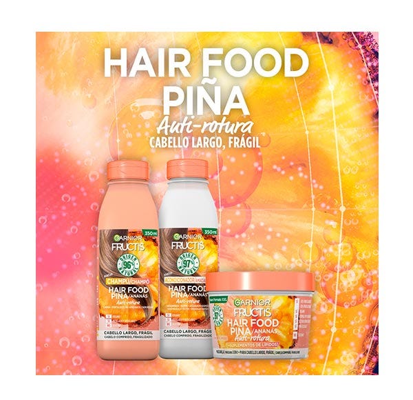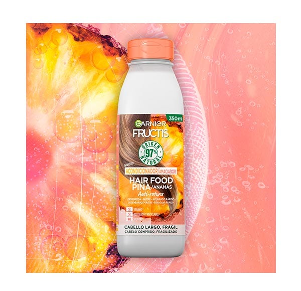 Descubre el nuevo acondicionador de Piña Garnier Fructis Hair Food, con fórmula vegana 97% natural y libre de siliconas que nutre y desenreda el pelo largo y frágil sin apelmazar.