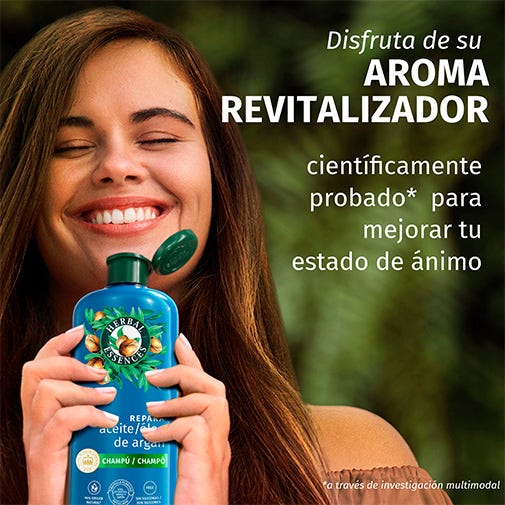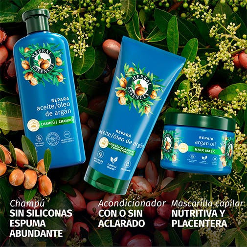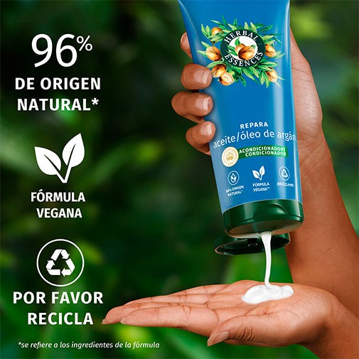 Herbal Essences Acondicionador Reparador con Aceite de Argán ayuda a hidratar el pelo dañado, dejándolo suave y brillante. Te aportará vitalidad y frescor gracias a sus ricos y exóticos aromas. Al mezclar nutrientes de origen vegetal con el apreciado Aceite de Argán, obtenemos una fórmula vegana, que nutre el pelo frágil. Nuestra lujosa y cremosa fórmula se puede usar como acondicionador con aclarado o sin aclarado, para disfrutar esta intensa sensación durante más tiempo