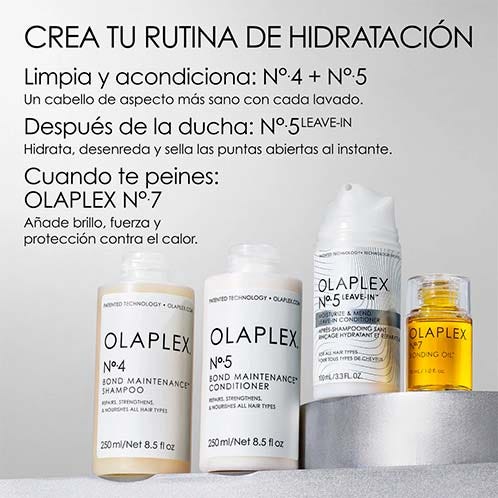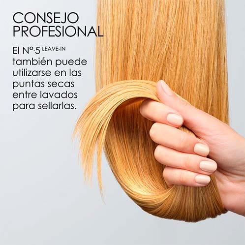 Este producto hidratante sin aclarado proporciona resultados al instante, y reparación y protección continuas desde la corteza a la cutícula. Nº.5 SIN ACLARADO™ sella de inmediato las puntas abiertas y favorece un cabello visiblemente más sano después de un solo uso. Ve más allá de la hidratación con OLAPLEX Bond Building Technology® y High-Adhesion Sealing Complex.
