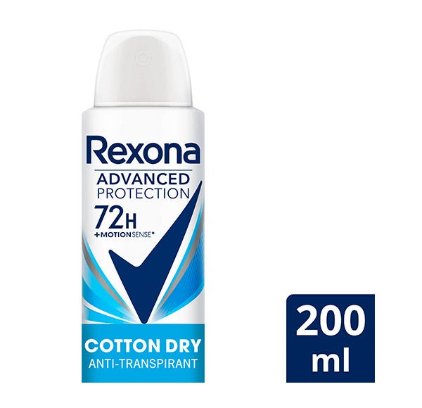 Rexona presenta su nueva fórmula Advanced Protection que brinda protección avanzada de hasta 72 horas, a la vez que te protege contra el mal olor y contra el sudor de forma imparable. Además, su tecnología Motionsense que se activa con el movimiento, proporciona una barrera más fuerte y duradera brindándote más confianza en cada actividad.