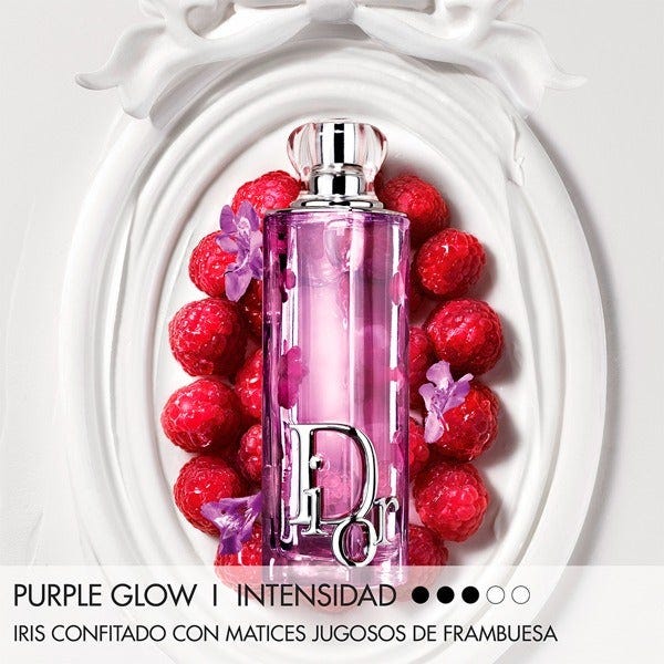 Vaporice Dior Addict Purple Glow en los puntos de pulso: cuello y muñecas. Combínelo con Dior Addict Lip Glow Oil 104 Black Cherry, el aceite de labios con acabado "glaze¹".
