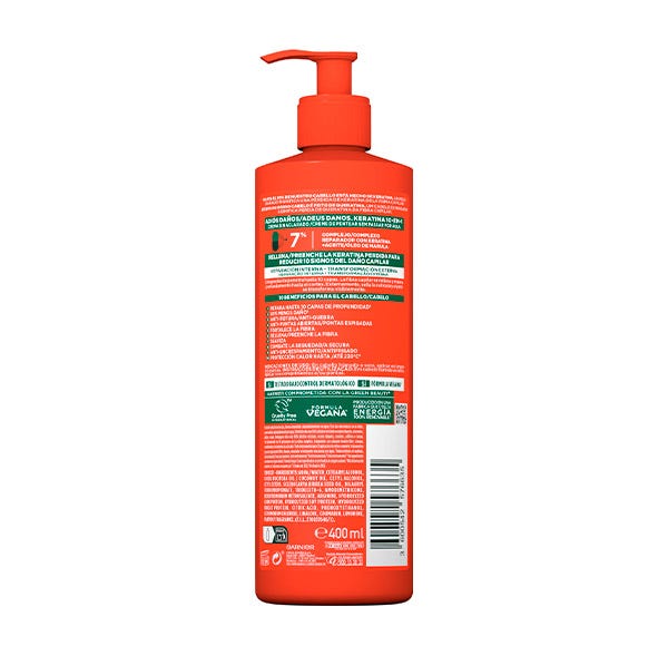 Descubre la revolución en cuidado capilar con nuestra Crema sin Aclarado 10-en-1 Adiós Daños de Garnier Fructis, diseñada para cabello dañado. Con una fórmula vegana, y un 7% de complejo reparador con keratina + Aceite de Marula , esta crema de 400ml ofrece una experiencia completa de reparación