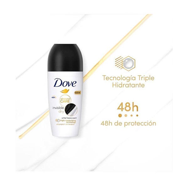 El desodorante Antitranspirante roll-on Dove Advanced Care Invisible Dry con protección para tus axilas durante 48 horas proporciona un cuidado superior a la vez que cuida tu piel.