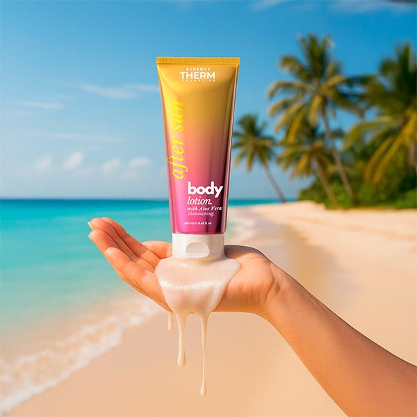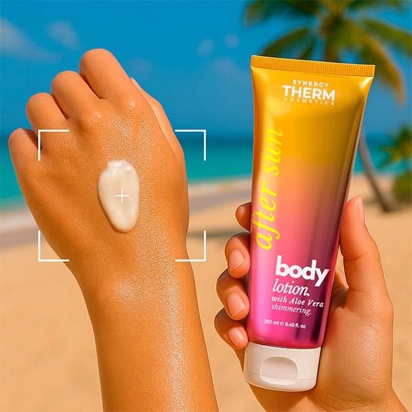 Synergy Therm After Sun Body Lotion es una loción calmante, refrescante y con acabado luminoso, especialmente formulada para la piel expuesta al sol. Con una textura ligera y de rápida absorción, ofrece una sensación inmediata de frescura, confort y un aspecto radiante y natural.