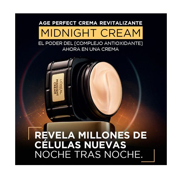 La nueva crema midnight antiedad de la gama Age Perfect Renacimiento Celular, con un complejo antioxidante de Vitamina E (antioxidante esencial que se encuentra naturalmente en la piel, y del cual el nivel disminuye durante el día a causa de las agresiones externas) y Neohespiridina (antioxidante extraído de la naranja amarga, siguiendo un proceso de química verde).