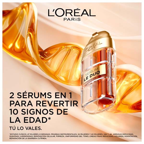 Descubre el poder rejuvenecedor de L’Oréal Paris Age Perfect Le Duo Serum, un sérum antiedad diario diseñado para actuar de forma global sobre los signos visibles del envejecimiento. Su innovadora tecnología combina dos fórmulas complementarias que trabajan en sinergia para mejorar la calidad de la piel desde el interior.