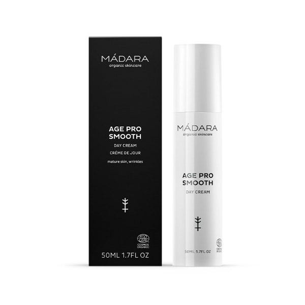 Age Pro Smooth crema de día es una línea de cuidado cutáneo desarrollada por expertos para las pieles maduras, secas y cansadas. Sus fórmulas ultrarrefinadas nacen de las investigaciones celulares avanzadas y de la experiencia profesional en el cuidado de la piel de MÁDARA. Su composición exclusiva contiene los activos más potentes de la naturaleza, que sirven de apoyo a las funciones vitales de la piel que se deterioran de forma natural después de los 45 años.