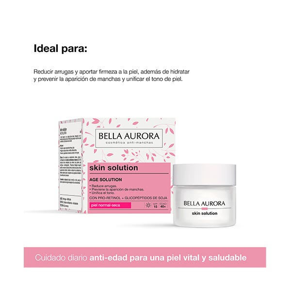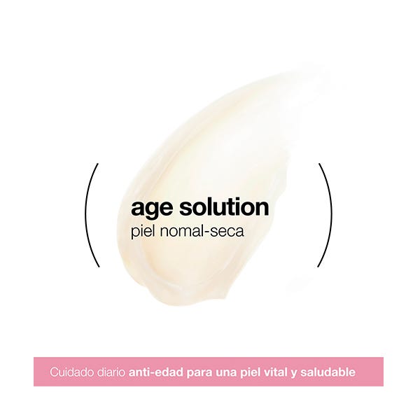 Age Solution es la respuesta al envejecimiento cutáneo gracias a la combinación de glicopéptidos de soja altamente purificados y pro-retinol, que se fusionan para ofrecer una potente acción antiarrugas y un incremento de la firmeza cutánea.