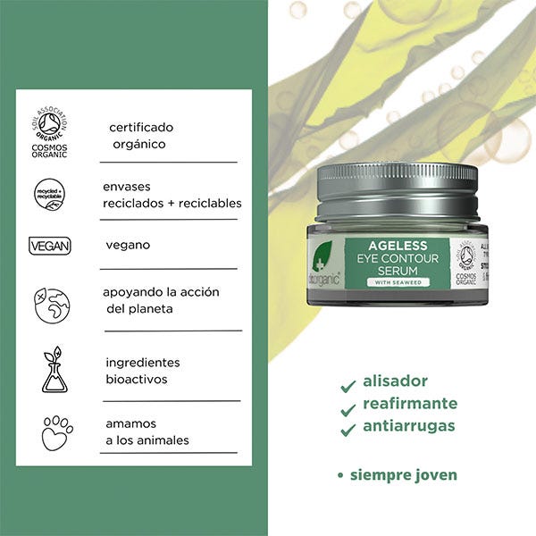 Con una infusión de algas marinas orgánicas y extractos marinos para combatir las líneas finas y las arrugas y lograr una piel naturalmente más suave y firme
