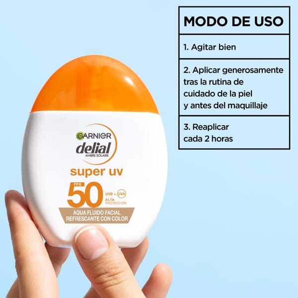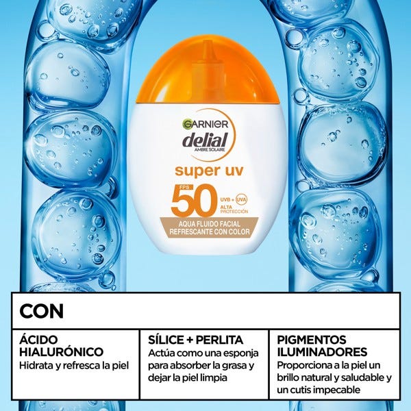 Di adiós a las cremas solares pesadas y pegajosas. El nuevo Delial Agua Fluido Facial Refrescante FPS 50 ofrece una protección de amplio espectro en una textura acuosa ultraligera que se absorbe en segundos y proporciona una sensación refrescante sobre la piel.