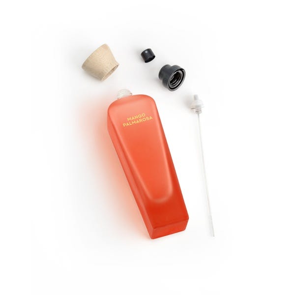 Mango Palmarosa. Una fragancia frutal y floral que desborda tus sentidos. Exótica. Exuberante. Adictiva. Como disfrutar de un día soleado. Como sacar lo jugoso de cada instante. Una explosión de frescura que dura, dura mucho. El agua más fresca, el jugo más cálido. El contraste entre la suavidad del mango y el coco y lo silvestre de la radiante palmarosa, con toques de jazmín y rosa para una explosión de vitalidad. Para no escatimar en dulzura, también lleva vainilla. Una combinación explosiva, una fragancia adictiva. Sensual. Exótica. Vibrante.