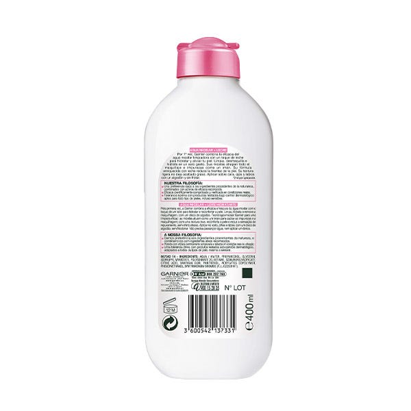 Su fórmula, enriquecida con leche hidratante y micelas, reduce la tirantez de la piel.