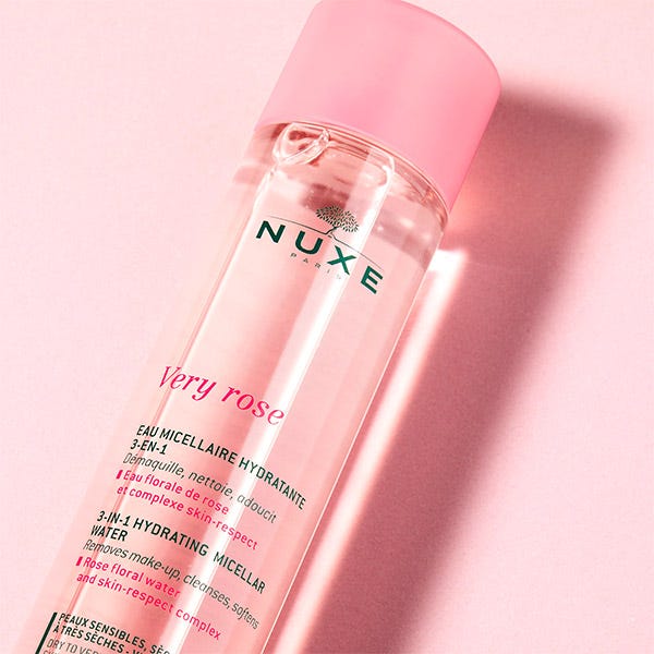 Esta agua micelar con Agua Floral de Rosa desmaquilla y limpia la piel del rostro y los ojos, eliminando el maquillaje y las impurezas.